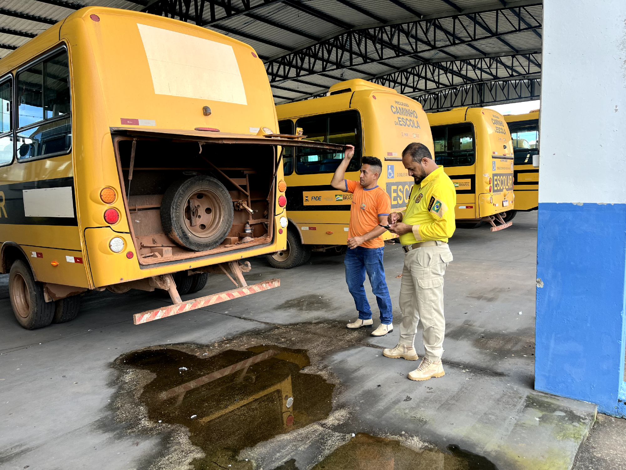 Durante a inspeção, foram avaliadas as condições mecânicas, itens de segurança, documentação e equipamentos obrigatórios dos veículos. Toda a frota vistoriada foi aprovada com sucesso, comprovando que os ônibus estão aptos a realizar o transporte dos estudantes com segurança e responsabilidade.