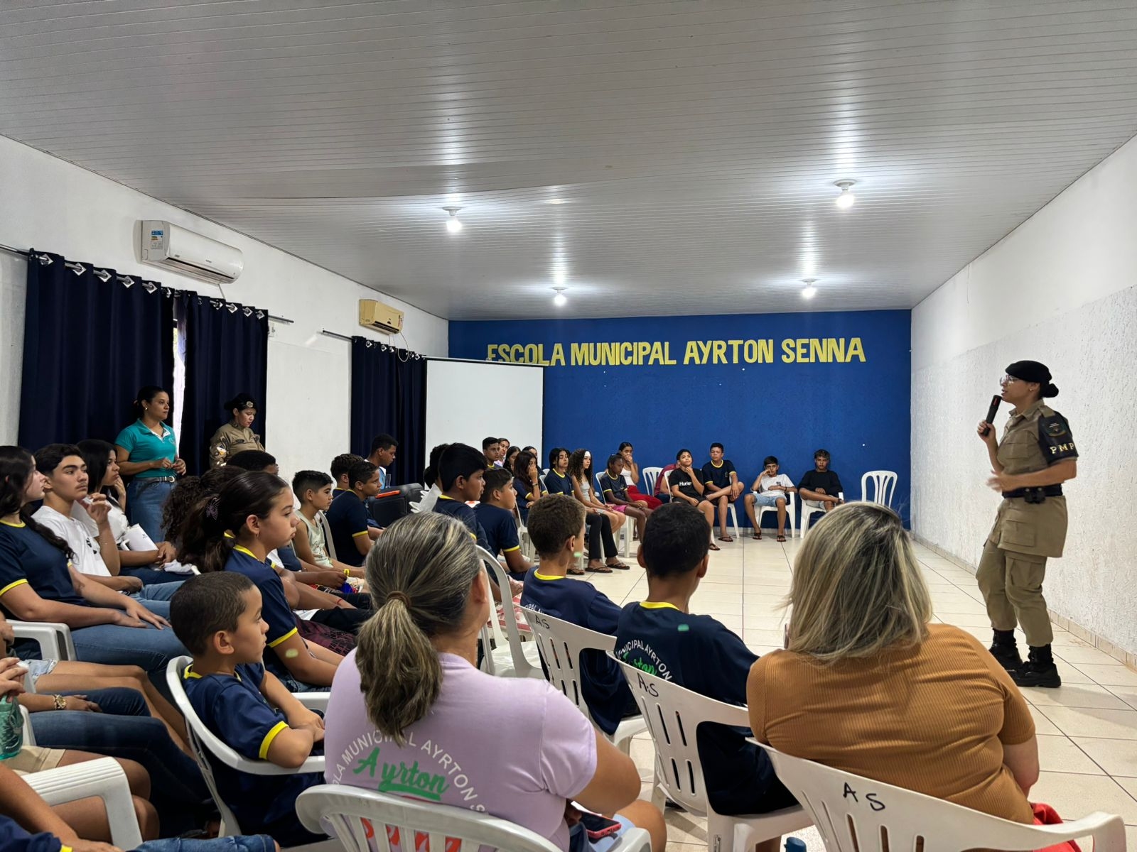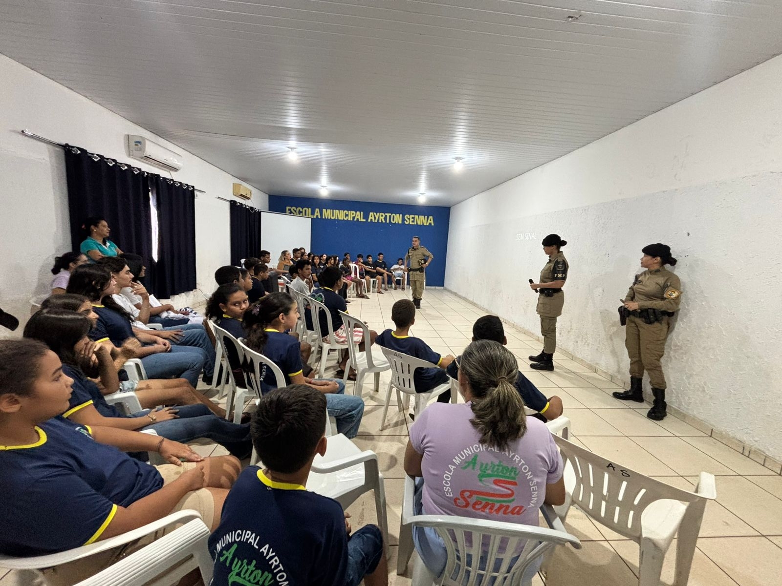 Na última terça-feira, dia 12, a Escola Municipal Ayrton Senna recebeu uma palestra especial com a Polícia Militar, voltada para a conscientização sobre a Lei Maria da Penha e a prevenção ao feminicídio.